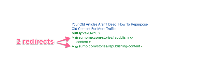 This is how a redirect chain (more than 1 redirect) looks like under the “Anchor and backlink” column