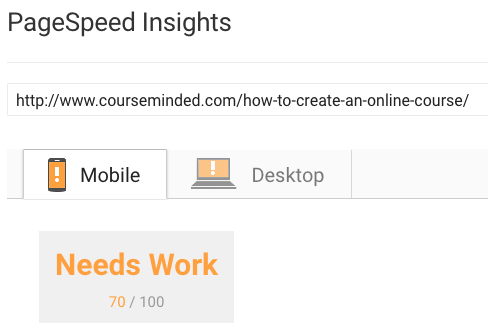 Check that the page scores 70 or above for mobile devices. Don’t mind Google’s classification for “Good”, “Needs work”, and “Poor.”