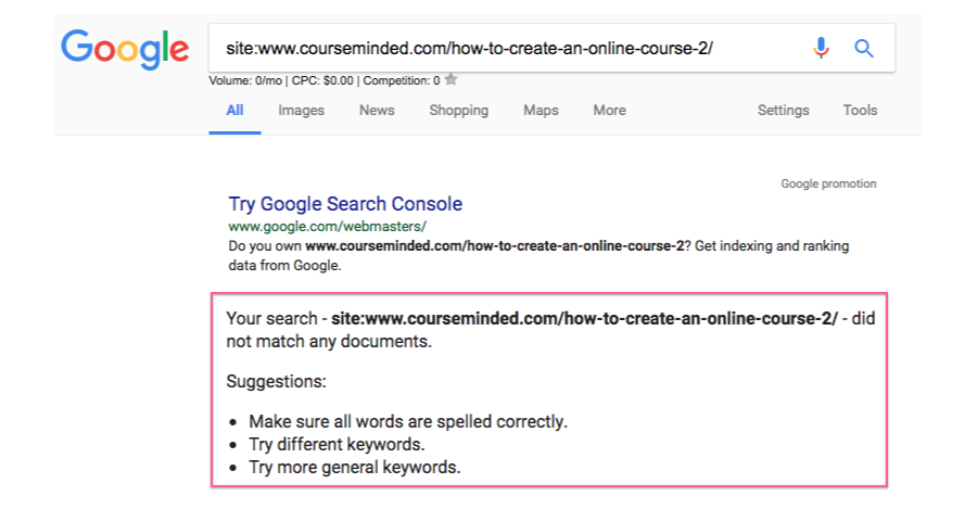 For the example in these steps, the primary keyword is “create an online course”.