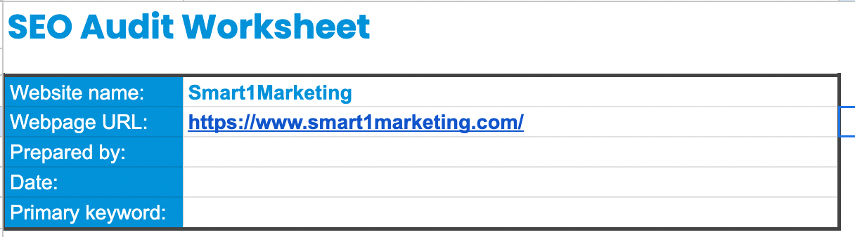 This audit assumes that you already know your keyword target and that the page should be optimized for.