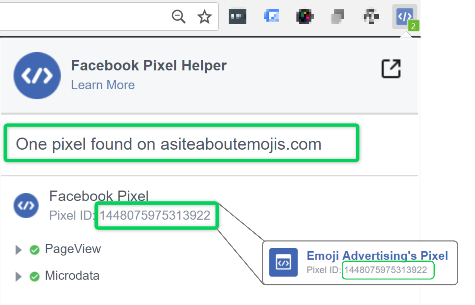 You should be able to see your Facebook Pixel installed. The extension should be able to find at least one pixel, and it should match the Pixel ID on your Facebook Business Manager.