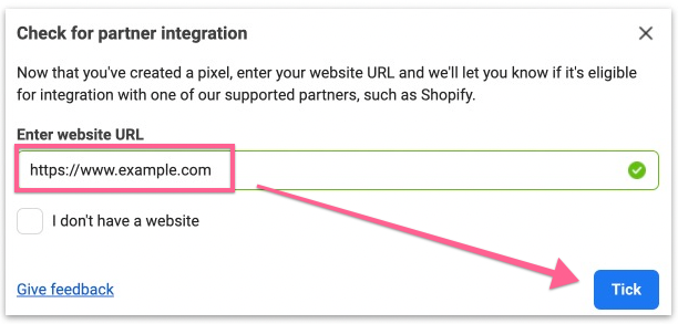Add your website URL and click “Tick”.