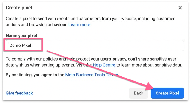 Name your pixel and click “Create Pixel”.
