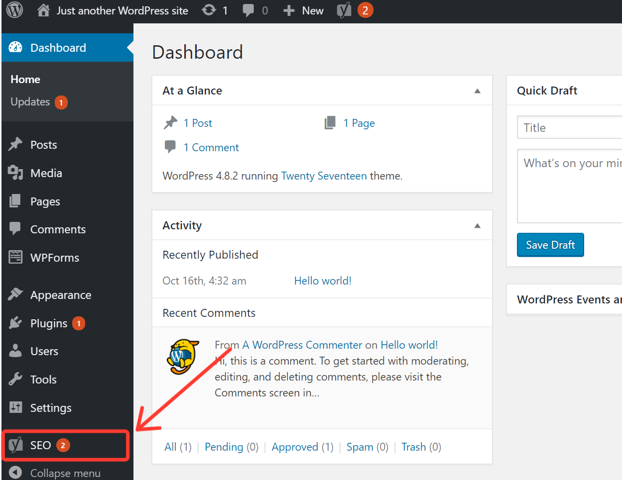 A new “SEO” option should appear on the sidebar of your WordPress admin.