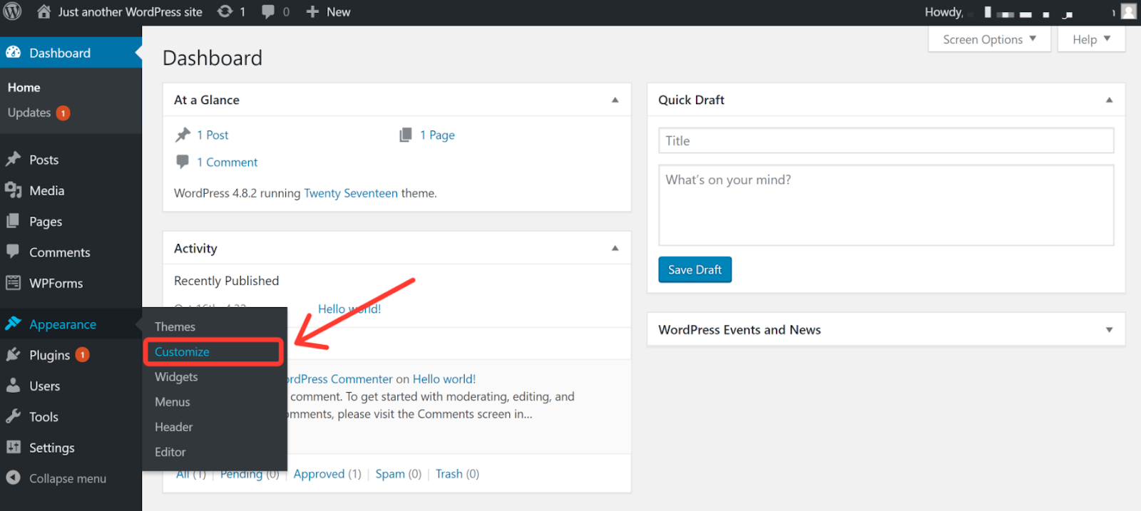 Inside the WordPress Admin Panel head over to “Appearance” → “Customize”
