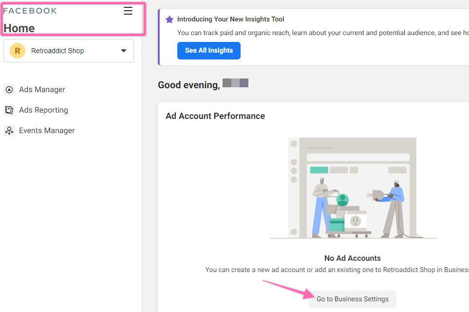 That’s it! If you now go to your Business Manager Home page you should now be able to see your new Facebook Ad Account:
