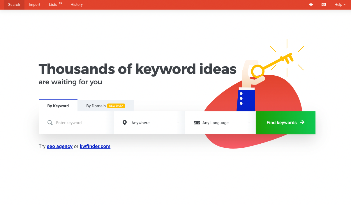 Sign up for KWFinder or ask for access if your company already has an account.