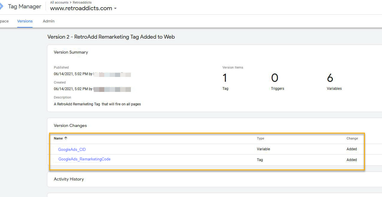 Note: Using ‘variables’ to store IDs ensures that, in the future, you will be able to easily add new tags that use that ID. In addition to that, if you need to change the ID in all tags (e.g: you change your ad agency), you only need to update it once by updating the variable value.