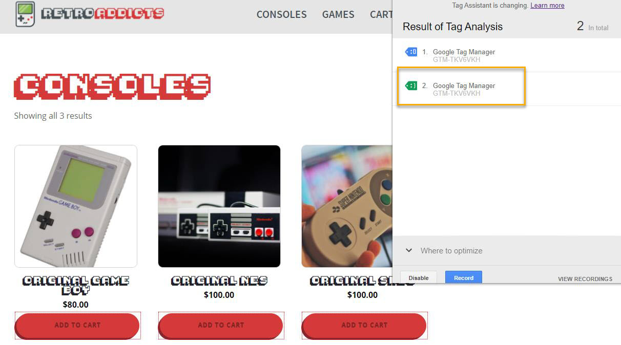 Note: This step requires the Google Tag Assistant Legacy extension to be installed on your Chrome browser.