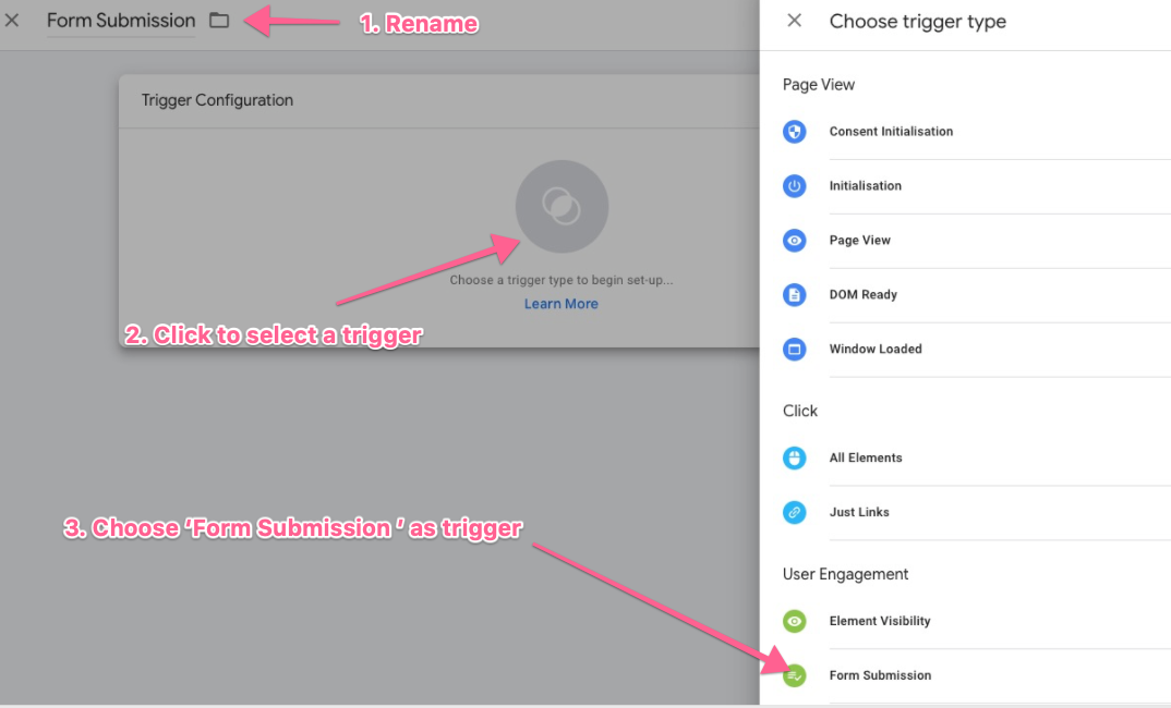 After selecting ‘Form Submission’, click on ‘Some Page Views’