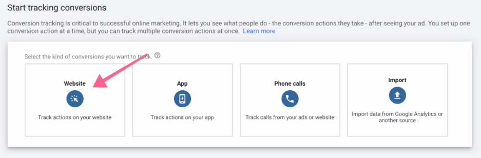 Creating your conversion in the new Google Ads Interface