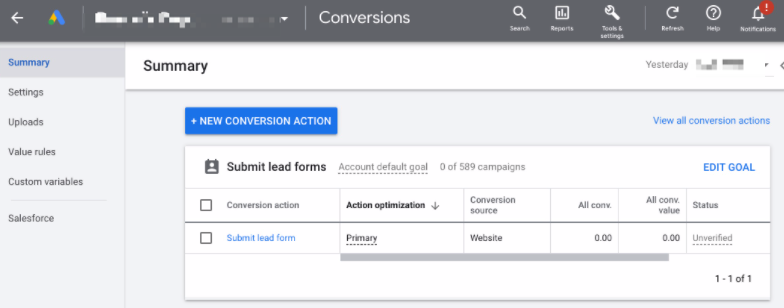 Goal: To track your Google Ads conversions (e.g. form fills, purchase, subscriptions, telephone clicks, etc) inside the platform.