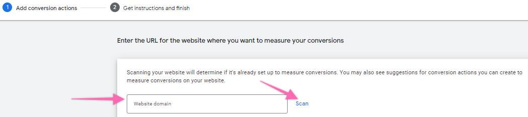 Enter the URL for the website you want to measure your conversions. Click “Scan”.