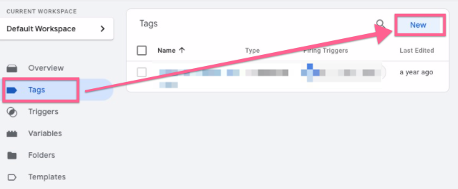 In the sidebar, click on ‘Tags’ and then ‘New’: