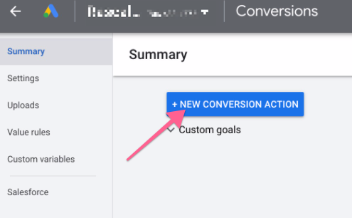 You will be diverted to the ‘Conversions’ panel, click the blue “+ New conversion action” button: