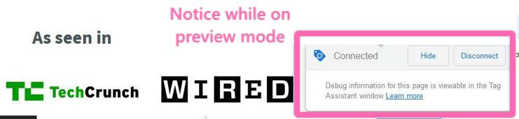 This will prompt you to the ‘Preview Mode’. While on ‘Preview Mode,’ perform the conversion tracking actions we have configured above.