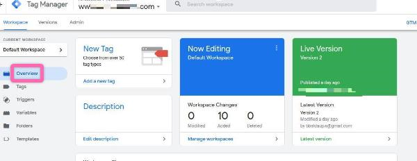 If you click “Overview” on the sidebar, Google Tag Manager will display an overview of your changes.