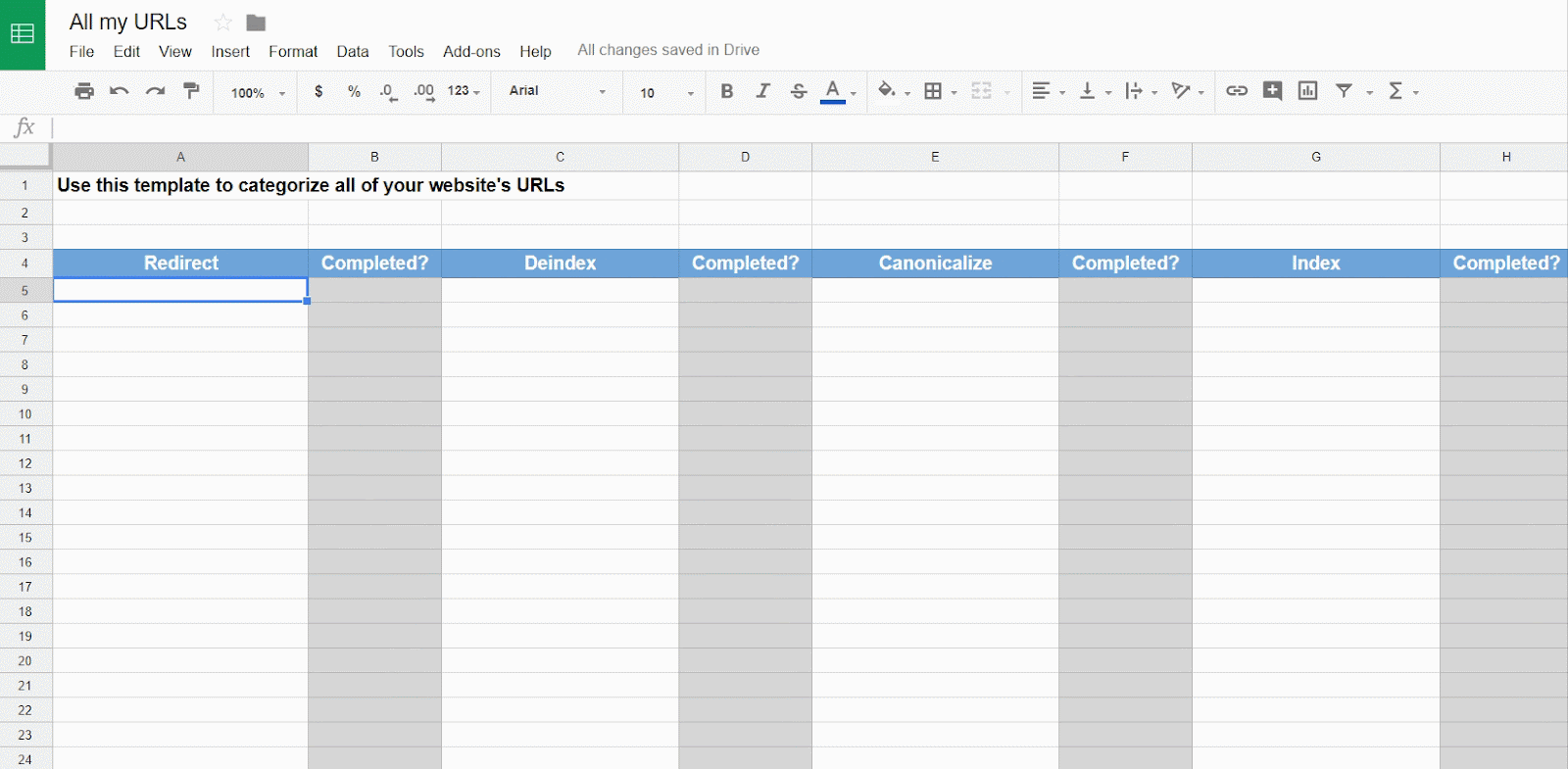 Go to the “URL Audit Worksheet” we have created for you.