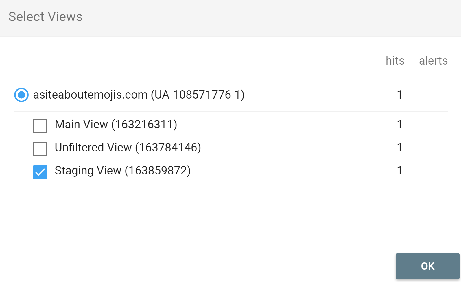 Note: Make sure you select the Google Analytics - Universal Analytics property (Property ID starts with UA-)