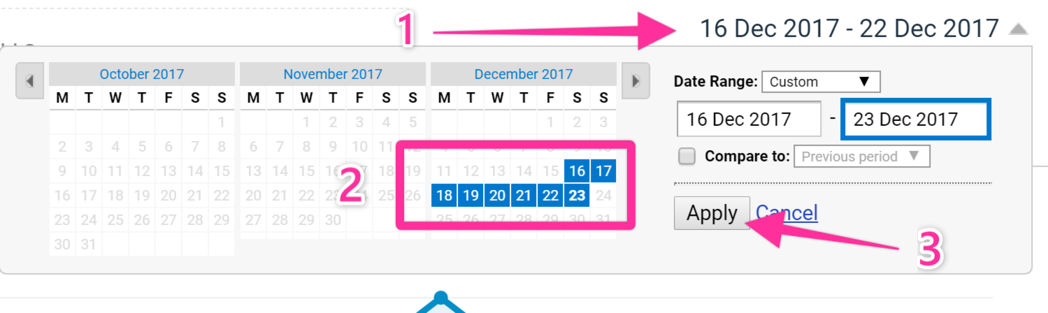 On the top right corner, select a period of time that includes the day when you want to include your annotation → Click “Apply”.