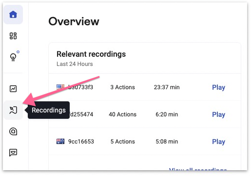 On the sidebar click “Recordings”.