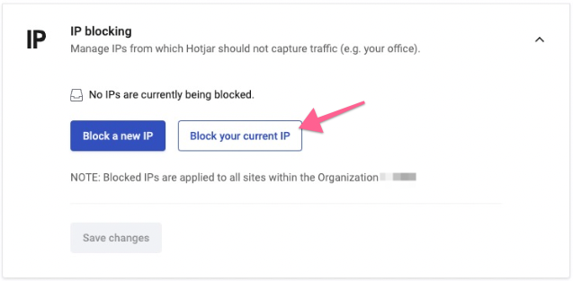 Scroll down to ‘IP Blocking’ and click ‘Block Your Current IP’