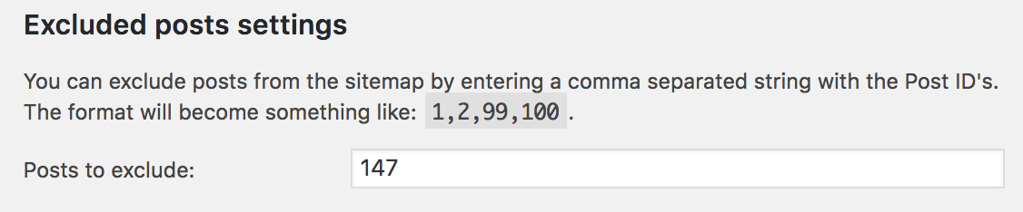 Click “Excluded Posts”: If when designing your sitemap you detected pages or posts that should be excluded from your sitemap you should enter their ID here.