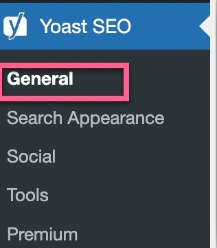 On your WordPress Admin Panel’s sidebar, click “Yoast SEO” and select “General”