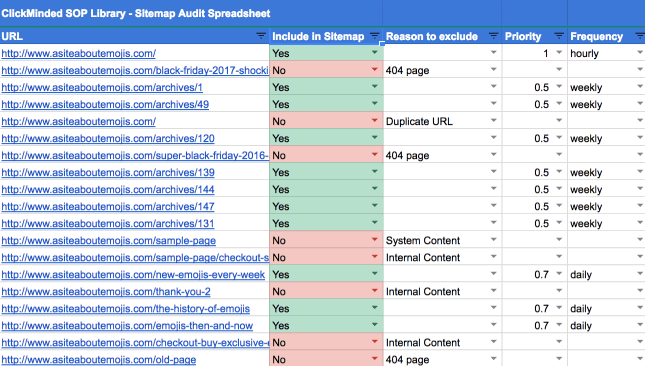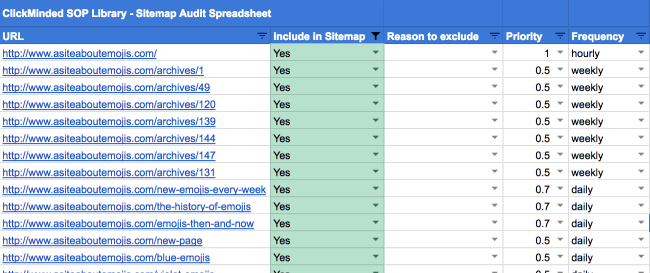 For each URL, select if you would want to include it in the sitemap or not. If you choose not to include it you should select a reason why not. Mark it as “Yes” as long as it follows all of these guidelines: