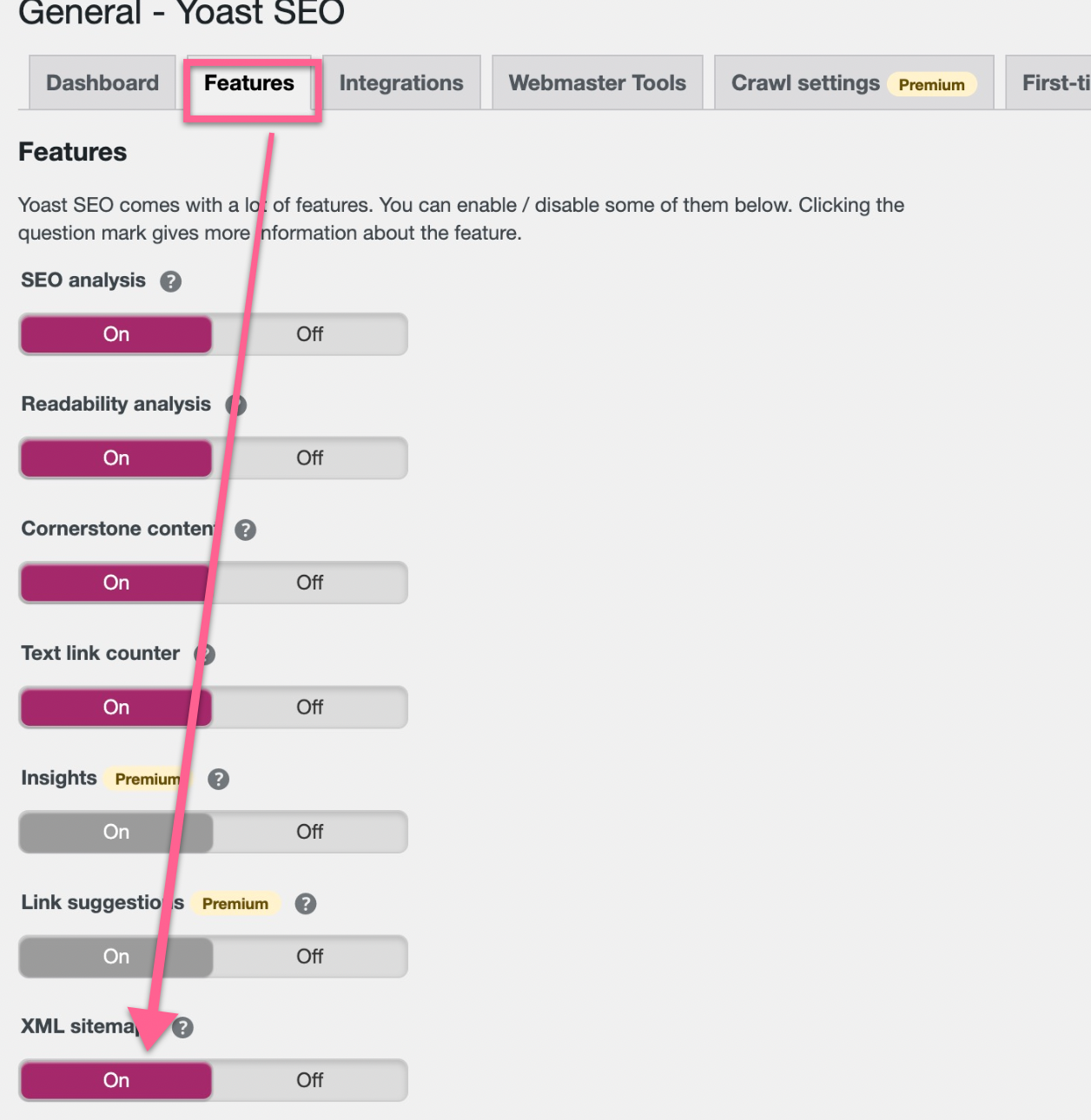 Under “Features”, enable the “XML Sitemap Functionality”: