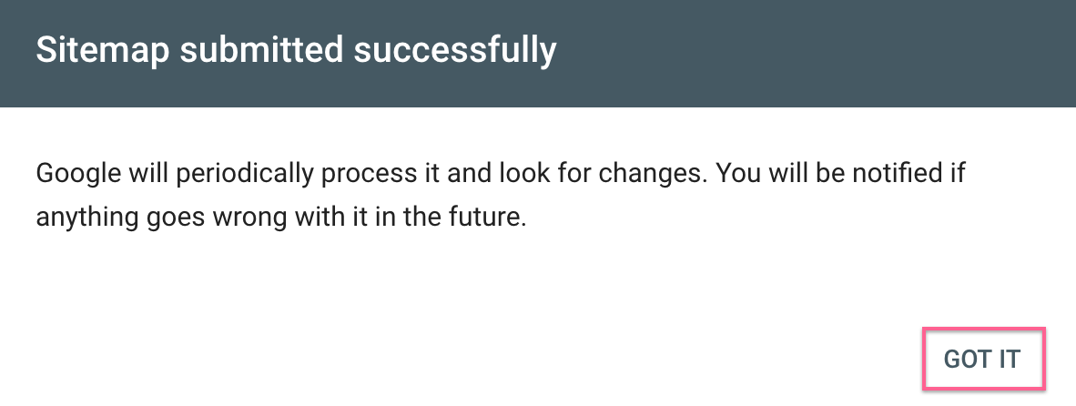 Note: If for any reason your sitemap wasn’t successfully submitted, you will be shown an error: