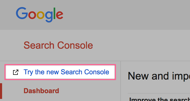 Note: If you’re still using the old version of Google Search Console click “Try the new Search Console”: