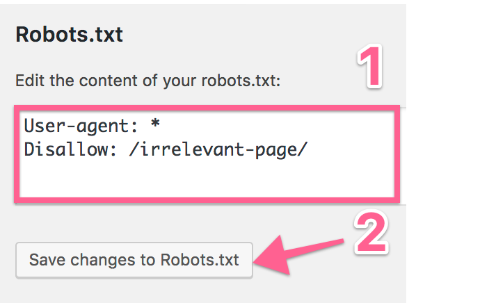 You will see an input text box where you can add or edit the text of your robots.txt file → Paste the content of the robots.txt file you have just created → Click “Save Changes to Robots.txt”.