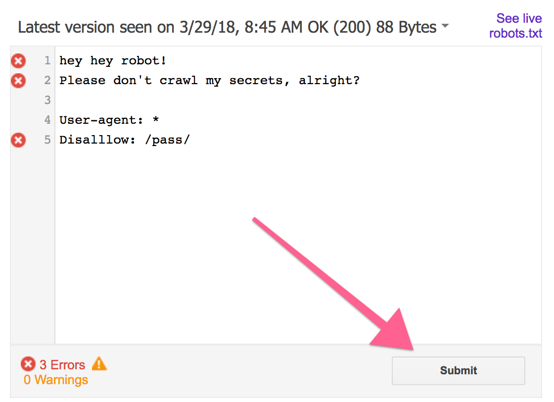 You will be sent to the robots.txt Tester tool where you will see the last robots.txt file that Google crawled.