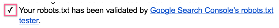 Your robots.txt has been validated by Google Search Console’s robots.txt tester.