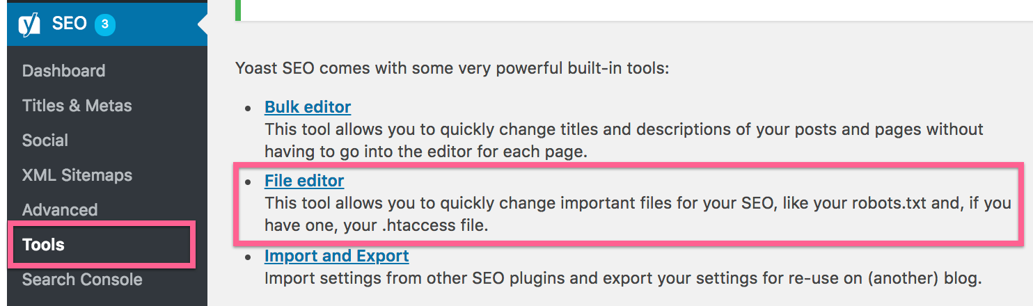 Note: If you don’t want to install Yoast on your website, the procedure below (using FTP or SFTP) will also work for you.