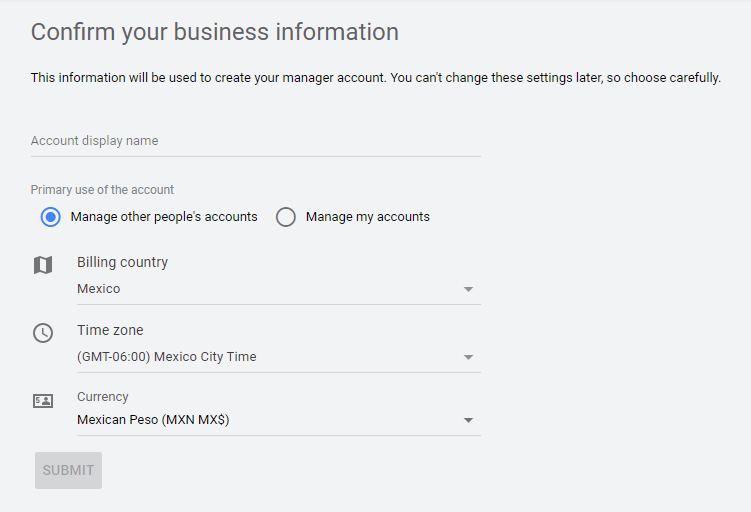 Once your Google Ads Manager account is created, click here to grant access to your teammates.