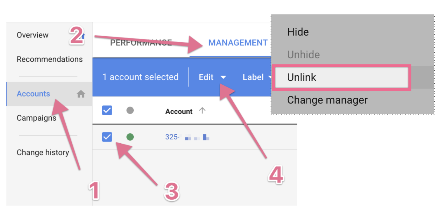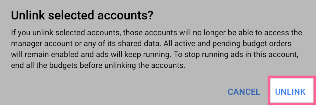 Unlinking a Google Ads or Google Ads Manager account from your Google Ads Manager account