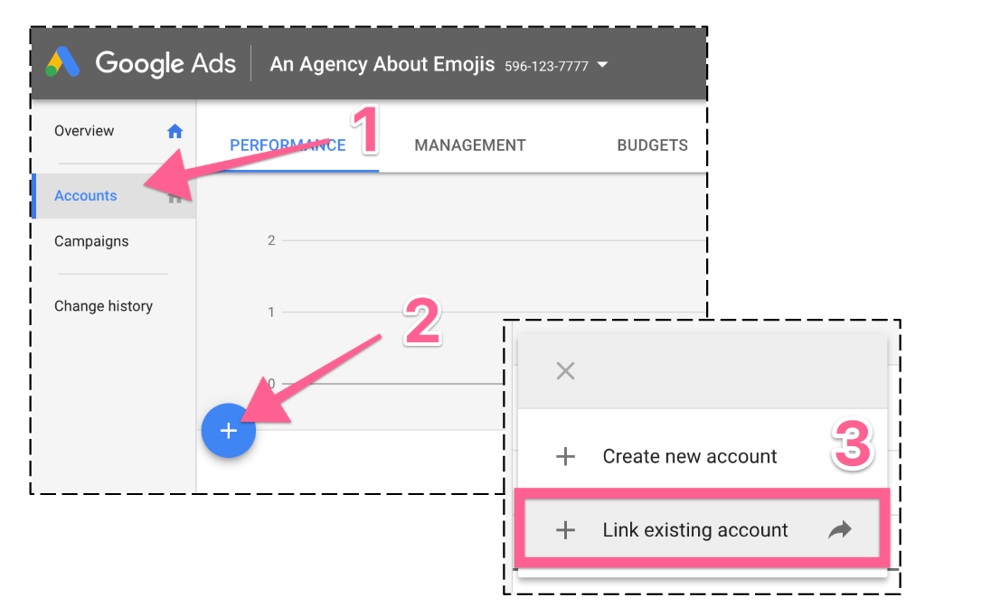 Typical scenario: An agency starts working with a client for the first time and wants to access the client’s Google Ads account;