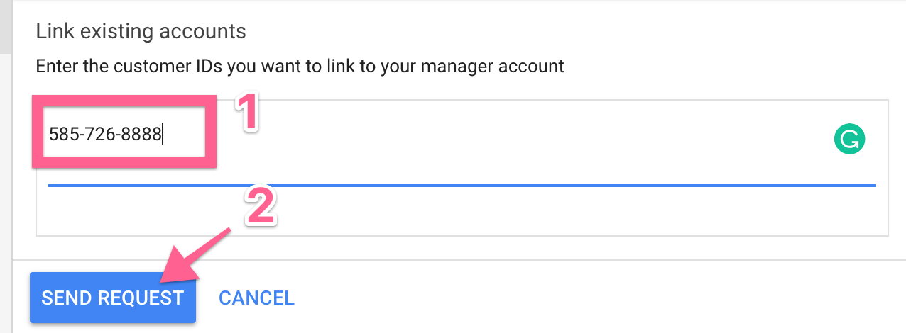 On the text box enter the Customer ID of the account that you would like to link to your Google Ads Manager account → Click “Send Request”;
