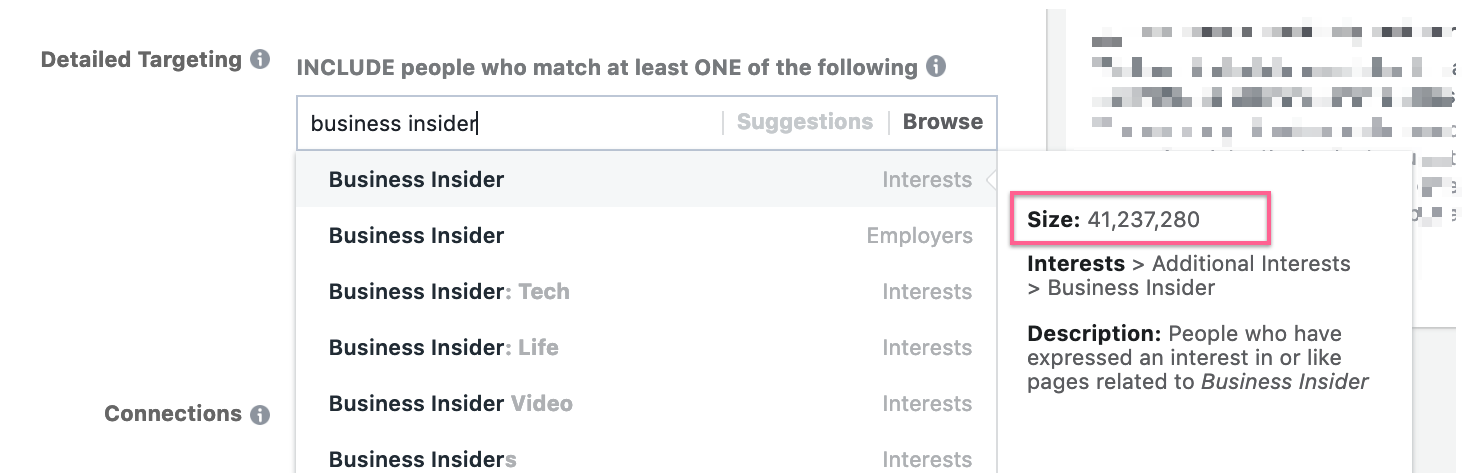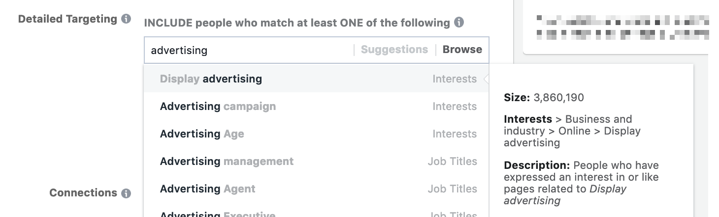 Ideal Outcome: You’ve selected a solid targeting option for your Ad based on data that is available to you and that takes into account the other audiences you are targeting across your account.