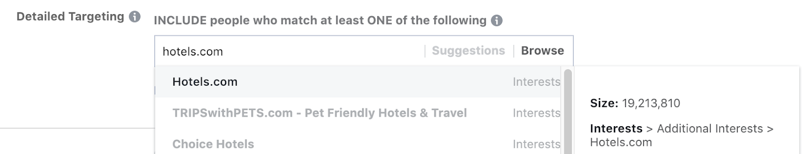Option 3 - If you do not have any of the options above, or want to diversify your traffic or test new audiences, you can target your competitors or brands that offer supplementary products/services to yours, or that are used by your target audience to gather information (as long as they are large enough).