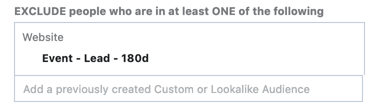 If you don’t want to show your ad to an Audience that already took your desired action, make sure you exclude that segment from your Audience.