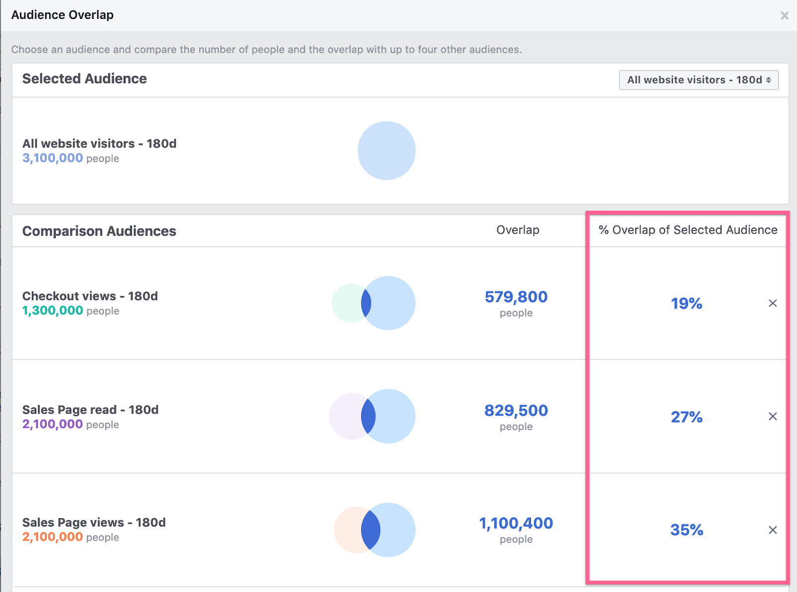 You will get a report that will tell you what’s the overlap % across your audiences: