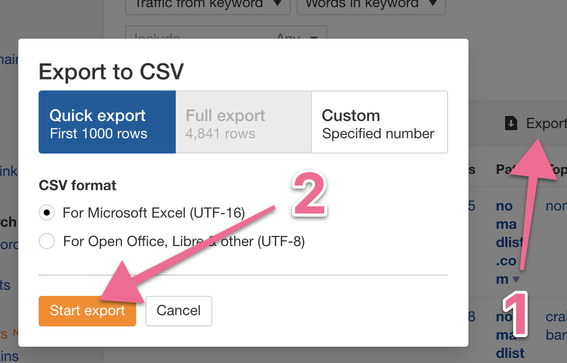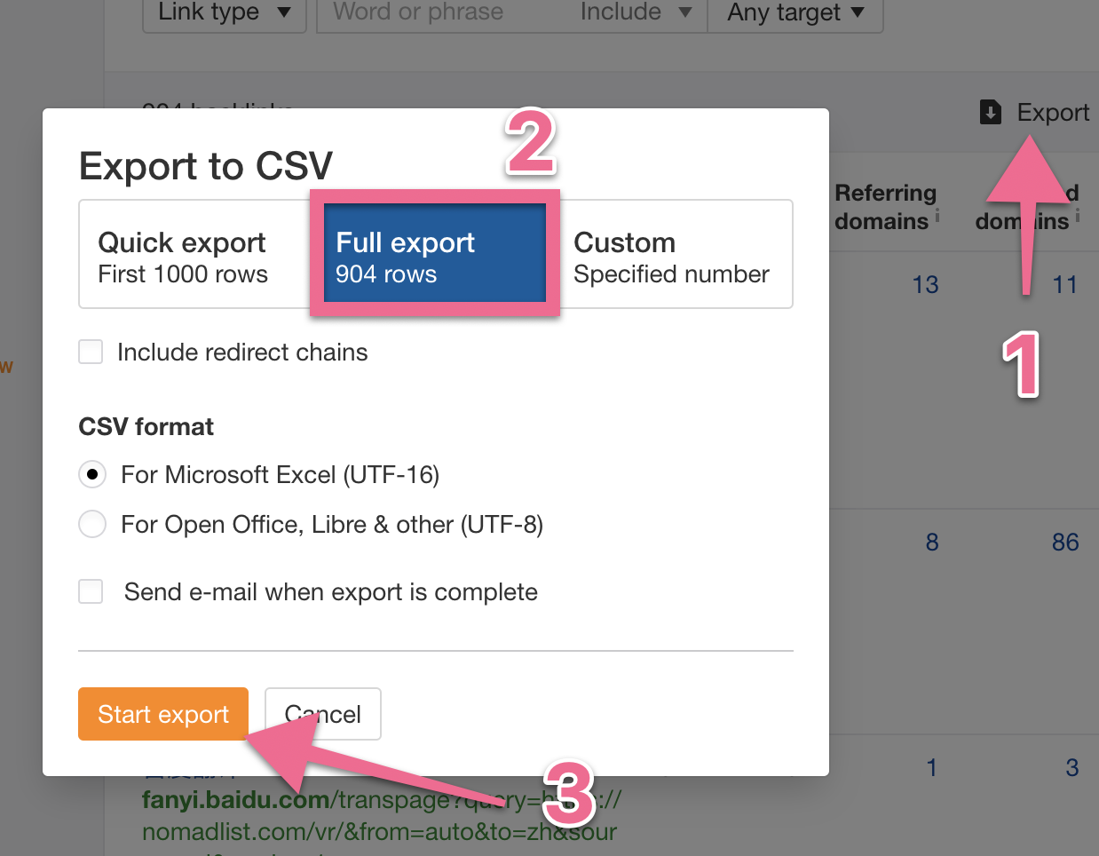 Click ‘Export’ → ‘Full export’ → ‘Start Export’