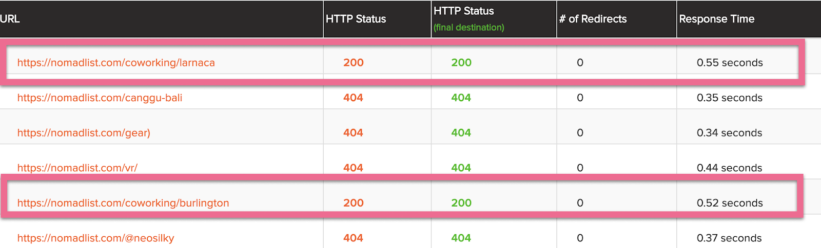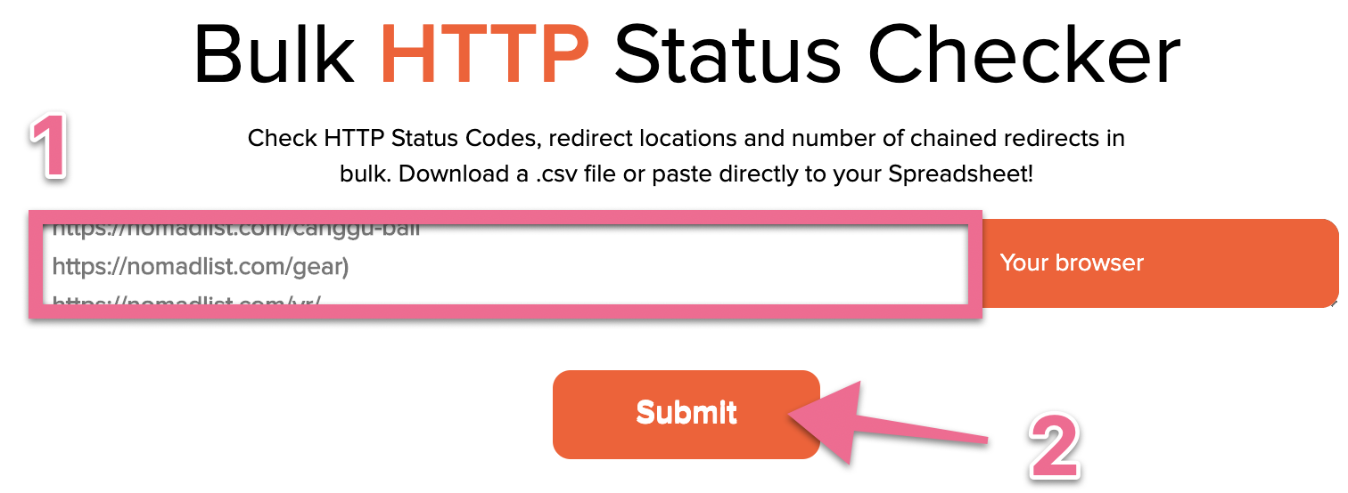 (Optional, might save you time) Make sure those URLs are still 404’ing and remove them from the list if they aren’t, using URLitor.com:
