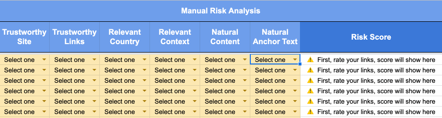 Analyze each link individually in the “Manual Risk Analysis” columns and that link will be assigned a Risk Score