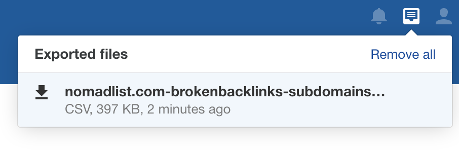 On the notification icon, download your exported CSV file when it’s ready