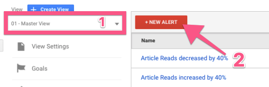 Make sure you are selecting the right view. → Click ‘New Alert’