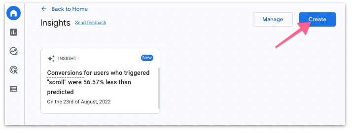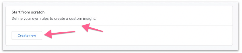 Scroll to the bottom. In the “Start from scratch” section, click “Create new”. You will be creating new insights which will let you automatically monitor the performance of your site.